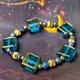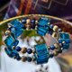 - 浓郁的青金石与蓝色琉璃方块交织如宫殿般庄严,金色边框设计为整体注入优雅庄重的光芒,仿佛置身于东方神殿的蓝金廊柱之间。此作适合渴望在低调中绽放魅力的你。