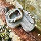 附上创作者,用黑白水泥及天然闪耀砂石手塑的底座。可以放入愿望纸条或戒指。