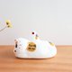 悠闲侧躺姿态十分讨喜的张子招财猫。 那放松舒坦的姿势,仿佛正轻盈地招来福气,散发着一种安详稳重的氛围。