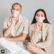 沿着鼻梁条压合口罩,使口罩与脸、鼻、口完整贴合