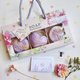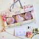 礼盒A : 薰衣草平衡皂(左|中)、玫瑰杏核水润皂(右)