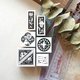 整个系打印章一共有6款,是以阴面印章为主要设计,特别适合近年大热的混色印台来盖印。设计上外加一小颗邮戳印章,以搭配整个系列来使用,更锦上添花!