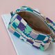 当我在百货公司周年庆买了半年份的化妆品跟保养品,曾经收到专柜的赠品,就是一个像这件作品差不多大小的化妆包。可以旅行时使用,也可以装得下我所有的针线手工活儿的机丝头,像是小剪刀、穿线机、各尺寸手缝针、夹子、镊子、粉笔、消失笔、铜环、各种扣子、缎带....。于是,当然要自己用喜爱的布料制作一个。自己需要的袋子自己做,第一个制作的袋子是有铺棉的,鼓鼓饱饱的袋身,很像样。