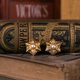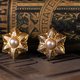 - 西班牙古董库存新品,大马士革工艺,六瓣花镶珍珠,纹饰造型耳夹,Niello工艺