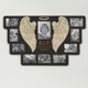 - Wall-mounted frame collage decorated with two wings, a halo, and a text in the middle that reads R I P in our memories Emma. This collage is horizontal and 46 by 75 centimeters. The text and color of the frame can be customized. This is a mourning decor.