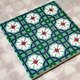 白陶制吸水杯垫;表面覆以金门古厝常见的彩瓷花砖图纹为设计元素。