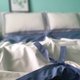 1. 枕头套: 正反面皆以暖米色为底色,正面镶细海蓝色框与海蓝色系滚绳