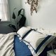 3. 床包: 此系列设计搭配海蓝色全圈松紧带(也可选择暖米色)。全圈松紧带的制作方式,让您睡觉不论怎么动,都不用担心床包移位;只要床垫高度尺寸在35厘米(含)以下都能轻松使用,只需要将多余布料往床垫四边轻拉即可