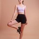 高腰超服贴裤头不挤腰边肉,长度为裤档4.5\\\\\\\\\\\\\\\\\\\\\\\\\\\\\\\"长,适合流瑜珈 八肢瑜珈练习者,裤管缀有一圈弹性透肤网纱为亮点,剪裁立体提臀,适合骑车跑步瑜珈练习。
