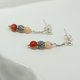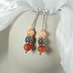 天然粉红珊瑚 磨砂红玛瑙 手工银饰耳环