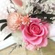 将鲜花浸泡有机溶剂,经过脱水脱色再染色而成,触感像鲜花一样具柔软性。