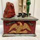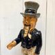 这款穿着马甲服,头戴星条纹高礼帽的经典美国代表人物山姆大叔,不仅有着帅气山羊胡且挺拔模样,铸铁材质且在时代的洗礼历练下,更呈现出本身散发出的质感和味道。按下山姆大叔旁的按钮便能使大叔的手提包打开并投掷钱币下去,能从下方取出所存放的钱币,有年代痕迹,适合个人收藏及摆设。