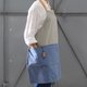 **“日常”职人工作服手工围裙 双色帆布 挂颈牛革皮带 浅灰并浅蓝**