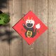 以彩色电绘方式绘制春联,穿着龙袍的黑猫和2013年戴着兔耳的黑猫为同系列创作。透过举着右手的招财黑猫与龙袍的加持,愿为大家纳进更多的财富与人气。