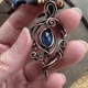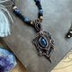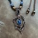使用蓝晶石,配以纯铜线,以绕线方式手作而成, 然后再加上复古做旧效果, 再抛光处理令花纹更具深度和对比.