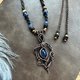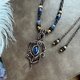 颈绳: 蜡线, 铜珠, 椰壳珠, 碧玉珠, 蓝晶石珠,苏打石珠