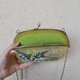 手拿包非常致密,很好地保持了它的形状。 金属吻锁框架粘合并缝在物品上。 斜挎手提包有一条可拆卸的链带,因此它也可以不带它作为化妆包使用。