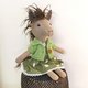 马儿女孩绒毛玩具,高 32 厘米(13 英寸),米色羊毛斜纹布,棕色人造毛,防过敏合成填充物。绿色棉质洋装饰有雏菊图案,搭配羊毛针织外套。绣制的眼睛和鼻子。所有衣物皆可拆卸。若您需要其他服饰,请与我联系。
