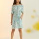 淡淡的印花 凉爽的棉麻材质 腰间可自行收腰绑带 也可以放松,自在穿着