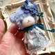 谢谢您的造访。 这款可爱的泰迪熊包包饰品以蓝色花朵装饰和花痴为特色。 ■规格■ 总长度:13厘米 含链子:22厘米 *四肢采用线关节连接。 移动时请动作轻柔。