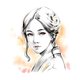 帆布印花 画布上优雅的黑白水墨女性肖像适合用于客厅装饰