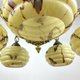 灯罩由融化牛奶色的彩色玻璃制成,吊灯的金属部件由锡、青铜和铜制成。 不同色调的金属强调了吊灯的古董价值。