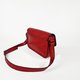这款红色真皮单肩斜挎包采用牛皮制成,带有爬行动物压纹。 它采用黑色对比饰边和枪色配件,为整体设计增添了一丝精致感。