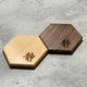 六边形杯垫 - 榉木/胡桃木 - 有英文字母系列,星座系列及多款图案俾你拣,仲可以自定款式