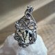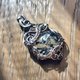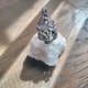 树枝水晶吊坠。线材为钛金属色艺术铜线。整体尺寸(长x宽)为48x27mm。