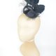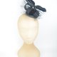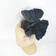 圆形底座覆盖着深灰色绒面,点缀着黑色网纱扭结、羽毛蝴蝶与薄纱头纱。底座直径约 8 厘米,整体宽度约 15 厘米,高度约 10 厘米。