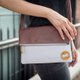 这款环保纯素斜背包百搭实用,需要时还能扩充容量。拆下背带即可作为手拿包使用。
