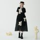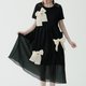 大白蝴蝶结黑色收腰洋装 / 连身裙 立体布 大口袋 A字裙