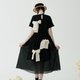 大白蝴蝶结黑色收腰洋装 / 连身裙 立体布 大口袋 A字裙 - imakokoni