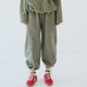冬季运动风格毛绒绿色休闲裤 / 裤子 - imakokoni