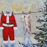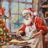 Deer Painting Santa Claus Sleigh Original Wall Art