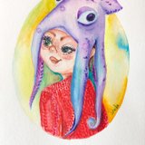 Octopus Painting Girl Original Art Girl Watercolor