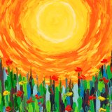 Sun Painting Flowers Plant Original Art Grass Art