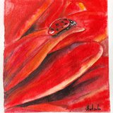 Ladybug Painting Floral Original Watercolor